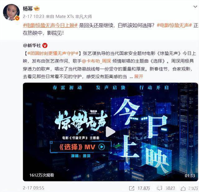 她最近的新动作可不止这一个,在2月17日的时候,她还发了一条动态,动态中她宣传了自己的新电影《惊蛰无声》。
